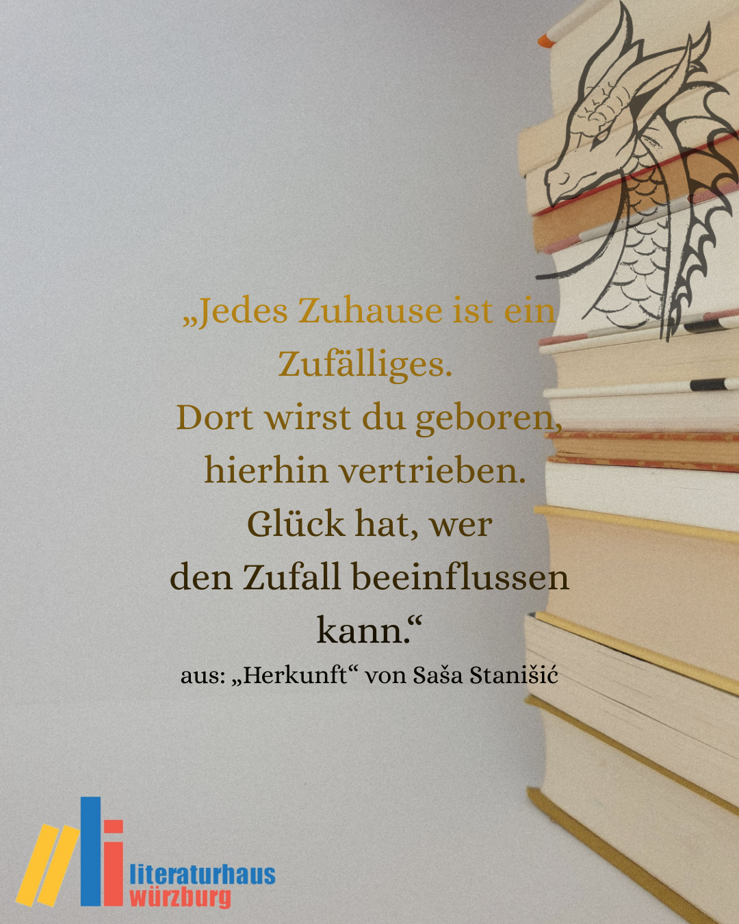 „Jedes Zuhause ist ein Zufälliges. Dort wirst du geboren, hierhin vertrieben. Glück hat, wer den Zufall beeinflussen kann.“ aus: „Herkunft“ von Saša StanišićEin Beitrag von Lilian Bestle: Lilian Bestle befindet sich in der letzten Phase ihres Master-Studiums der Sozialwissenschaftlichen Nachhaltigkeitsforschung und war im Laufe der Jahre immer wieder ehrenamtlich in Würzburger Projekten und Gruppen rund ums Schreiben aktiv. Hin und wieder schreibt sie auch selbst und demnächst geht es mit dem Rucksack genau in die Gegend, in die „Herkunft“ immer wieder zurückfindet.